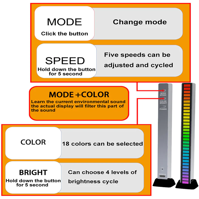 ๐ With a built-in highly sensitive microphone, our sound control bar responds to voice commands for seamless operation. Choose from no less than 8 display modes, 18 color modes, and 4 levels of brightness adjustment to suit your mood and environment.